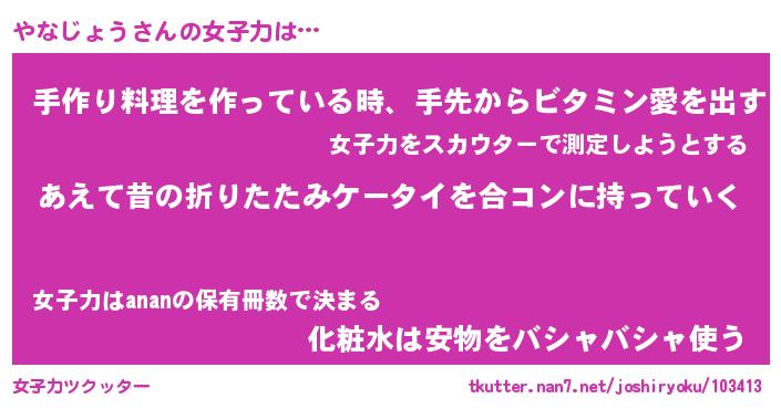 | ファンタジー風あだ名 | 『ヤナフェル』『エターナルヤナジョウー』 |
