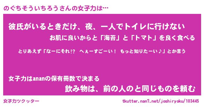 | 女子向けラノベタイトル風あだ名 | 『のぐちそういちろう姫と円卓の騎士』 |