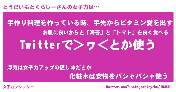 | ヘコむあだ名 | 『とうにゅー』『つくし』『とう太郎』 |