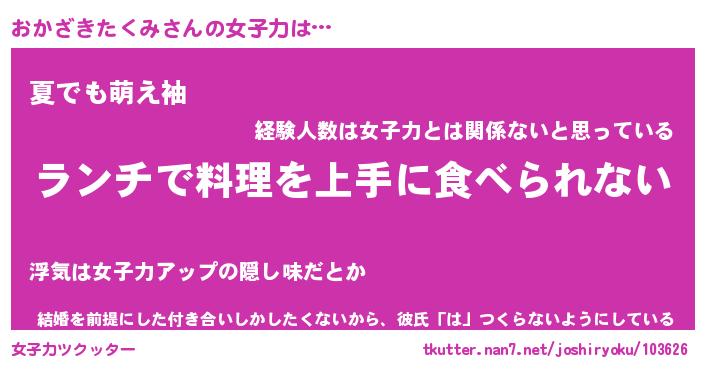| ヘコむあだ名 | 『おかふぇ~』『なまこ酢』 |