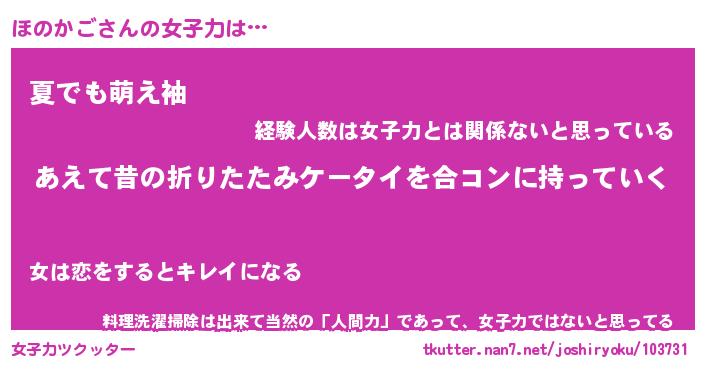 | ヘコむあだ名 | 『ほのもー』『酢こんぶ』『ほの太郎』 |