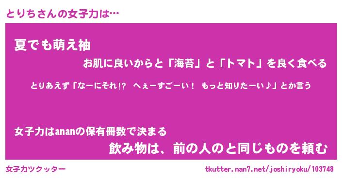 | ヘコむあだ名 | 『とりふぇ~』『なまこ酢』 |