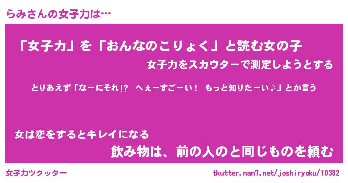 | ヘコむあだ名 | 『らみにゅー』『レバニラ』『らみを』 |