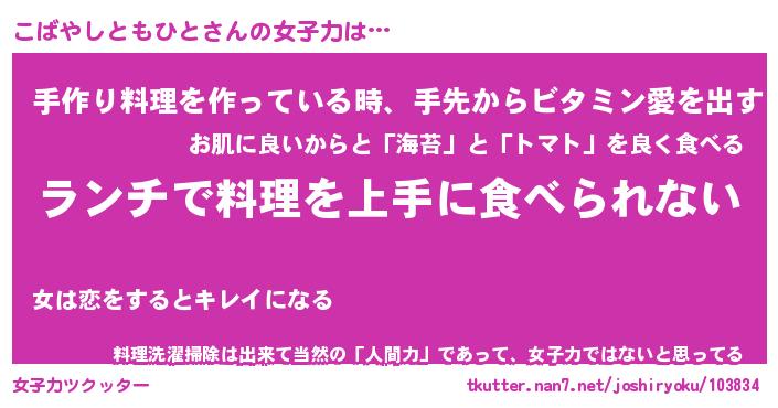 | ヘコむあだ名 | 『こばふぇ~』『つくし』『こばっ子』 |