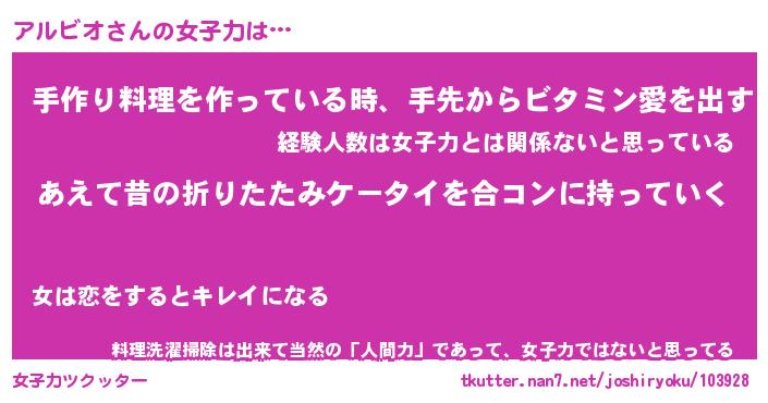 | ヘコむあだ名 | 『アルにー』『酢こんぶ』『アルお』 |