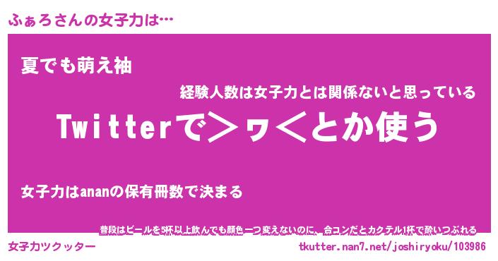 | ヘコむあだ名 | 『ふぁにー』『つくし』『ふぁを』 |