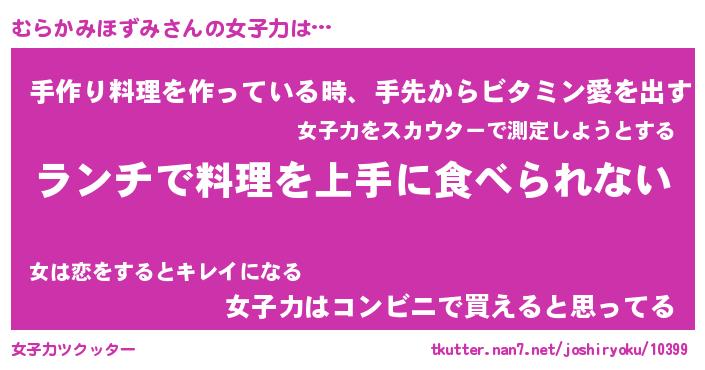 | 恥ずかしいあだ名 | 『プリティーむらかみほずみ』『むらちん』 |