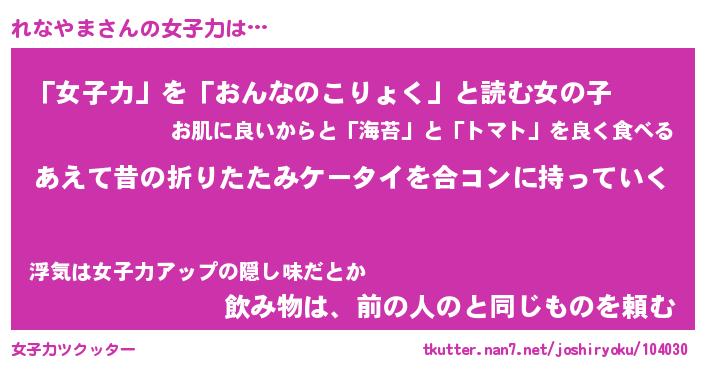 | ヘコむあだ名 | 『れなふぇ~』『なまこ酢』『れなを』 |