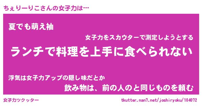 | 女子向けラノベタイトル風あだ名 | 『誰かこのちぇりーりこを説明してください! ~契約から始まるウェディング~』 |