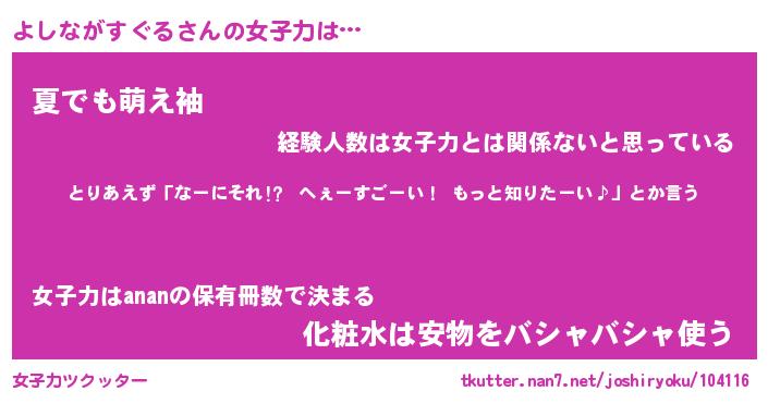 | ヘコむあだ名 | 『よしもー』『豆乳』『よしっちょ』 |