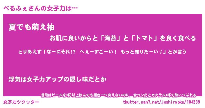 | 意味不明あだ名 | 『ペロリンべるふぇ』『永久保存べるふぇ』 |