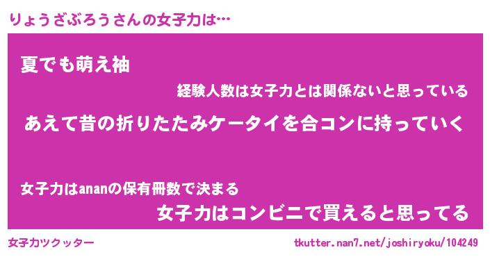 | ヘコむあだ名 | 『りょふぇ~』『酢こんぶ』『りょを』 |