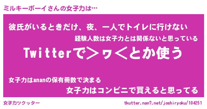 | 男性向けラノベタイトル風あだ名 | 『ミルキーボーイの憂鬱』 |