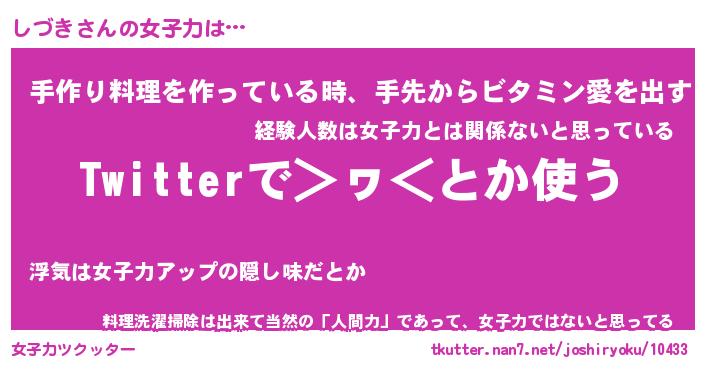 | ヘコむあだ名 | 『しづにー』『酢こんぶ』『しづっぺ』 |