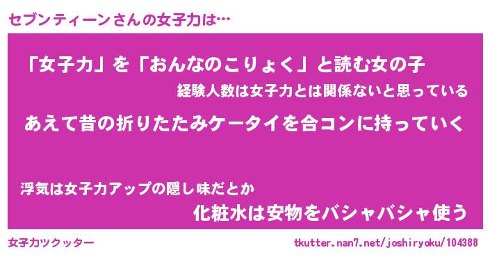 | 胡散臭い通販商品みたいなあだ名 | 『必ず成功するブレスレット…その名も「セブンティーン」』 |