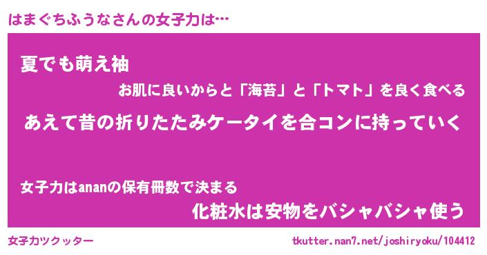 | 胡散臭い通販商品みたいなあだ名 | 『必ず成功するブレスレット…その名も「はまぐちふうな」』 |