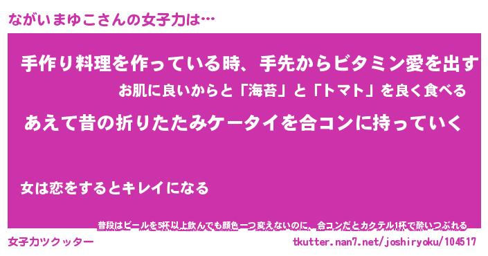 | 胡散臭い通販商品みたいなあだ名 | 『必ず成功する水晶球…その名も「ながいまゆこ」』 |