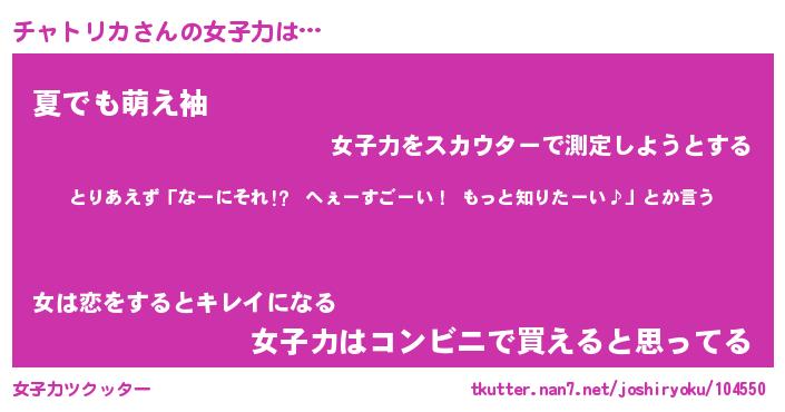 | ツイッター | チャトリカさんのツイッターID『katatsumuri_idle』 |