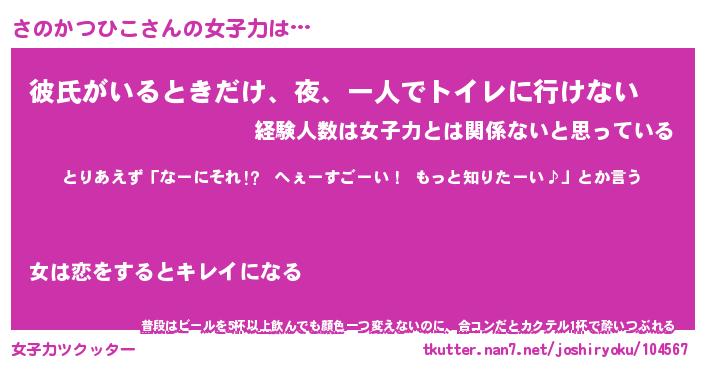 | 恥ずかしいあだ名 | 『プリティーさのかつひこ』『さのっちょ』 |
