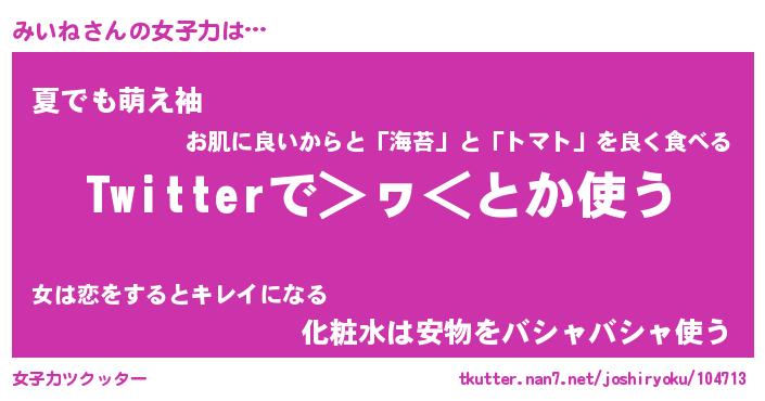 | ヘコむあだ名 | 『みいっふぃ~』『なまこ酢』 |