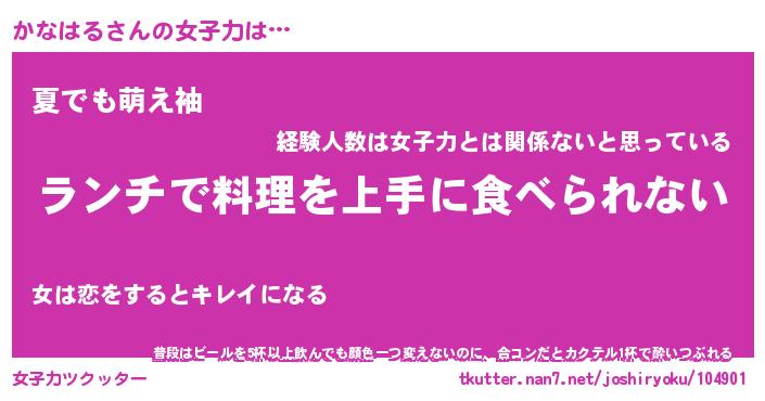 | ファンタジー風あだ名 | 『カナフェル』『エターナルカナハルー』 |