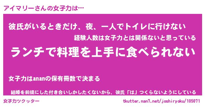 ファンタジー風あだ名 | 『アイフェル』『エターナルアイマリーー』 |