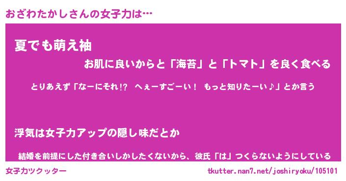 | ヘコむあだ名 | 『おざもー』『なまこ酢』 |