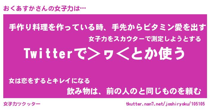 | 胡散臭い通販商品みたいなあだ名 | 『モテモテ間違いなしブレスレット…その名も「おくあすか」』 |