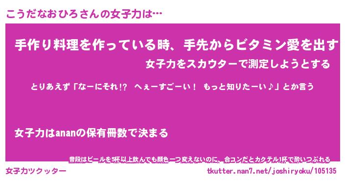 | ヘコむあだ名 | 『こうもー』『つくし』『こうを』 |