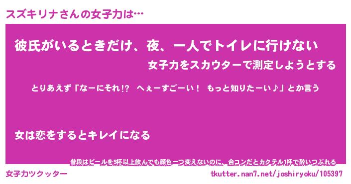| 胡散臭い通販商品みたいなあだ名 | 『モテモテ間違いなし霊験あらたかなお札…その名も「スズキリナ」』 |