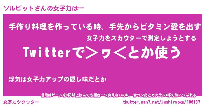 | 女子向けラノベタイトル風あだ名 | 『(仮)ソルビットのやんごとなき事情』 |