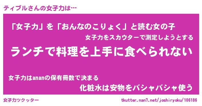 | ヘコむあだ名 | 『ティふぇ~』『牛乳』『ティぷりん』 |