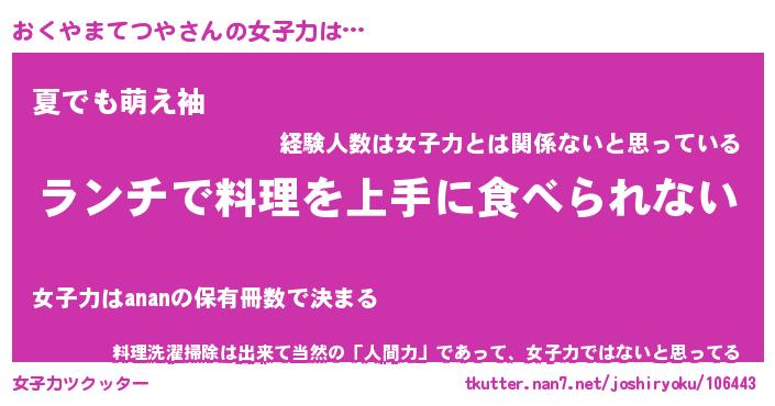 おくやまてつやさんの女子力をツクッター!