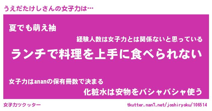 | ツイッター | うえだたけしさんのツイッターID『fukuyoka_star』 |