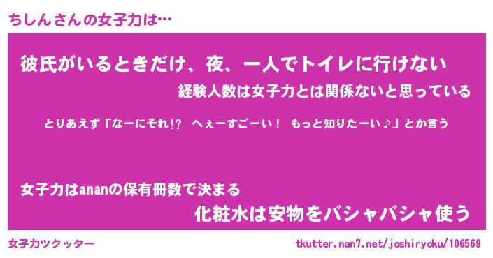 | ヘコむあだ名 | 『ちしにー』『豆乳』『ちし太郎』 |