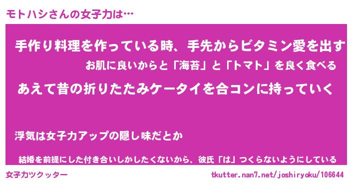 | ファンタジー風あだ名 | 『モトフェル』『エターナルモトハシー』 |