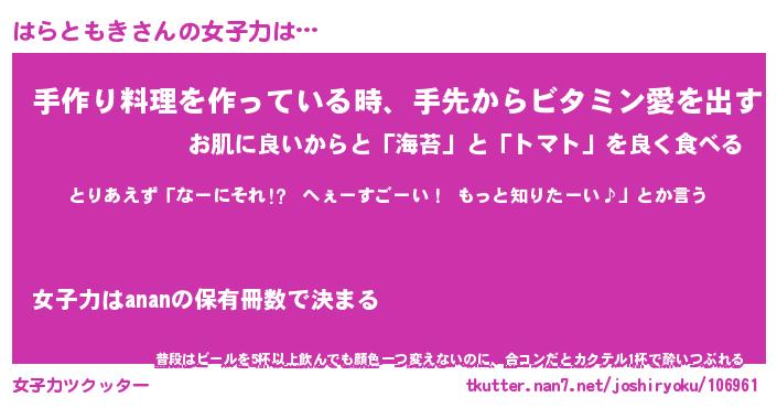 | ヒーロー風カッコイイあだ名 | 『スーパーハラトモキ』『暗黒騎士ハラ』 |