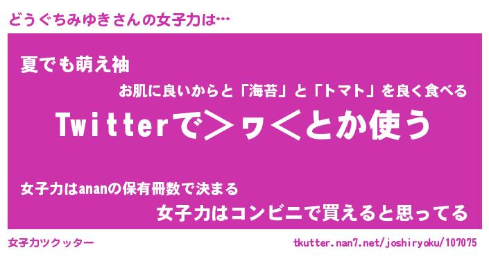 | 男性向けラノベタイトル風あだ名 | 『どうぐちみゆきの憂鬱』 |