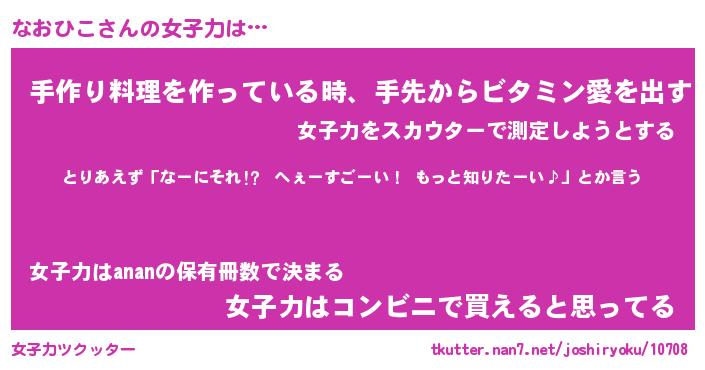 | ヘコむあだ名 | 『なおもー』『なまこ酢』『なお太郎』 |