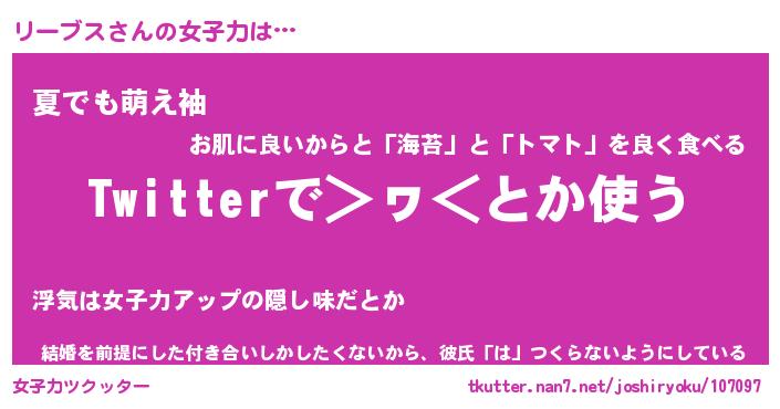 | 意味不明あだ名 | 『ペロリンリーブス』『永久保存リーブス』 |