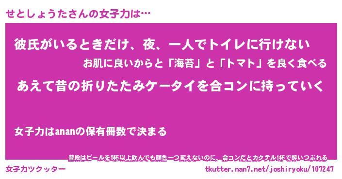 | 胡散臭い通販商品みたいなあだ名 | 『必ず成功する水晶球…その名も「せとしょうた」』 |