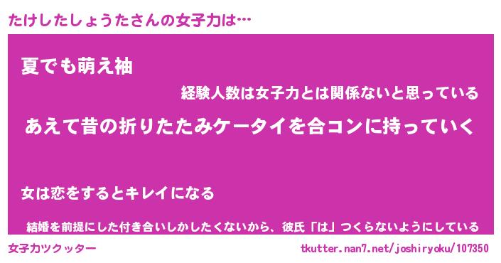 | ヘコむあだ名 | 『たけもー』『なまこ酢』『たけっ子』 |