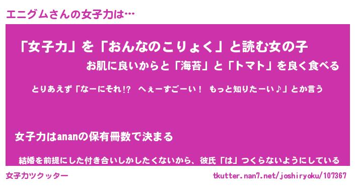 | 恥ずかしいあだ名 | 『プリティーエニグム』『エニっちょ』 |