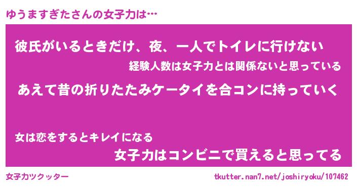 | 恥ずかしいあだ名 | 『プリティーゆうますぎた』『ゆうっちょ』 |