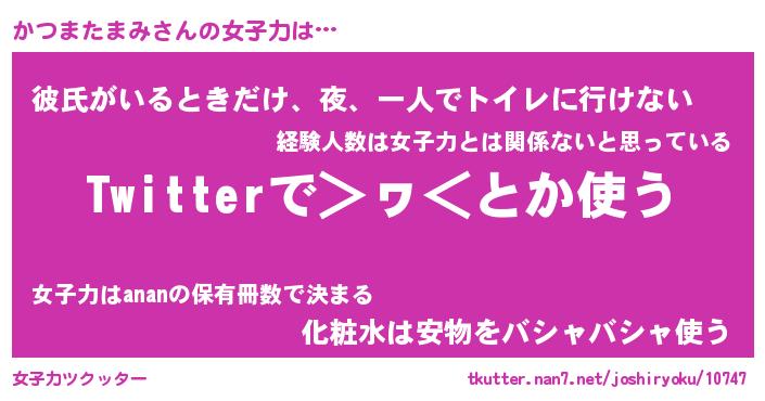 | 恥ずかしいあだ名 | 『プリティーかつまたまみ』『かつっちょ』 |