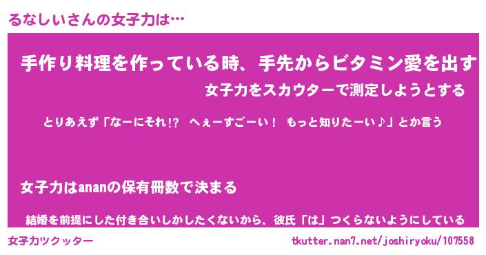 | 胡散臭い通販商品みたいなあだ名 | 『モテモテ間違いなし水晶球…その名も「るなしい」』 |