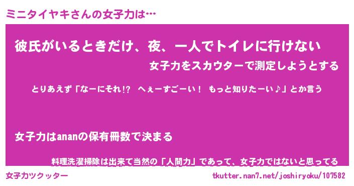 | ヘコむあだ名 | 『ミニにゅー』『豆乳』『ミニお』 |
