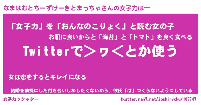 | 女子向けラノベタイトル風あだ名 | 『(仮)なまはむとちーずけーきとまっちゃのやんごとなき事情』 |