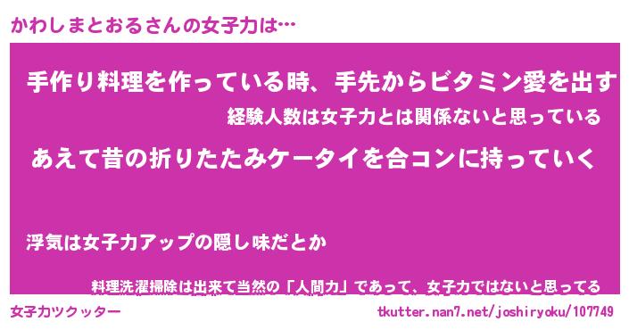 | ヘコむあだ名 | 『かわっふぃ~』『つくし』 |