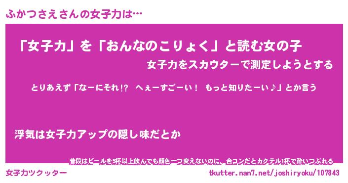 | ヘコむあだ名 | 『ふかふぇ~』『酢こんぶ』『ふかを』 |